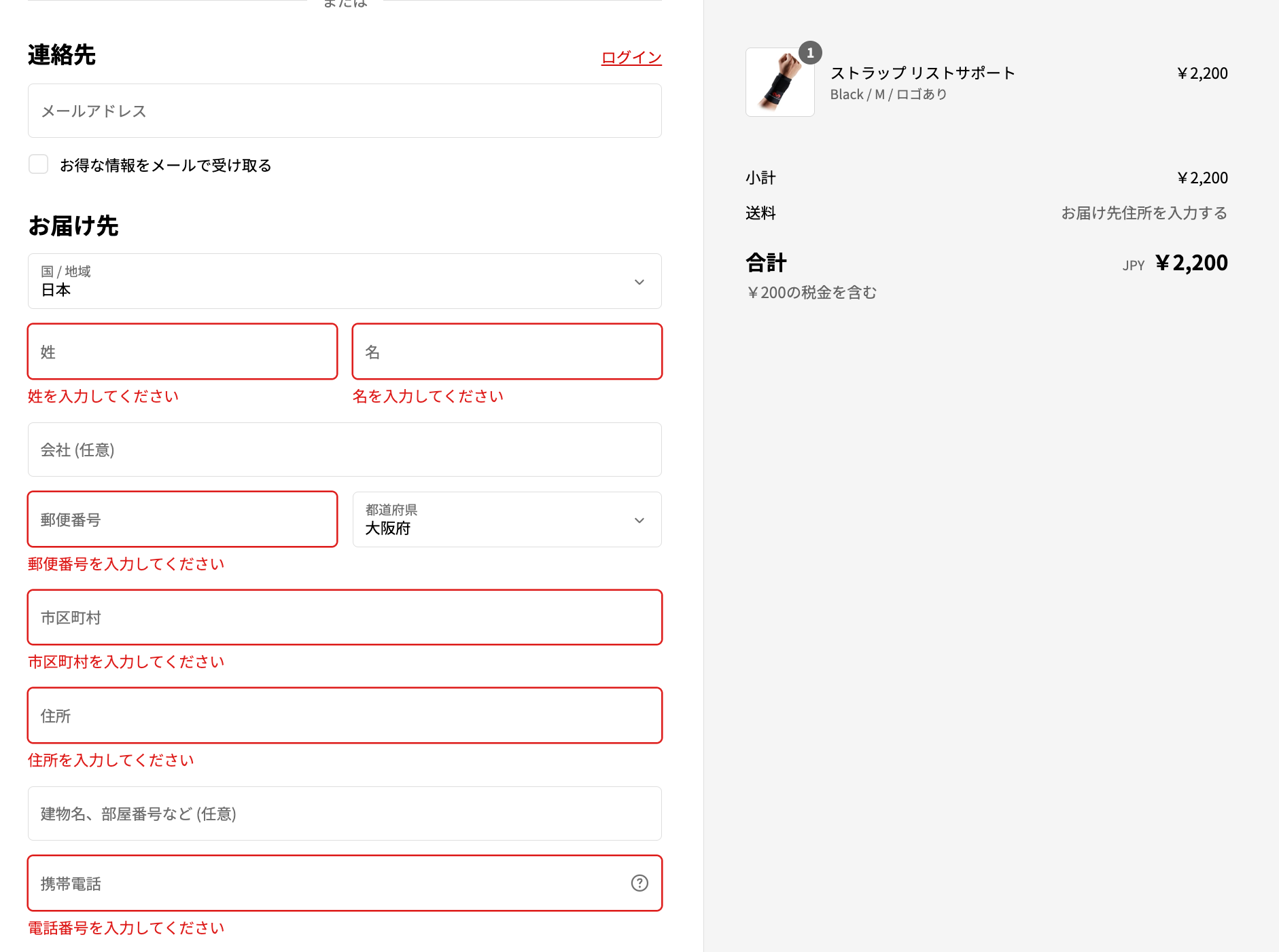 配送先の住所を選択してください。新規で住所入力される場合は、「新しい住所を使用する」を選択してご入力します。 「配送方法の選択へ進む」をクリックし、配送情報に問題がなければ「お支払いへ進む」をクリックしてください。