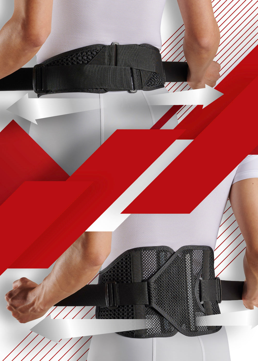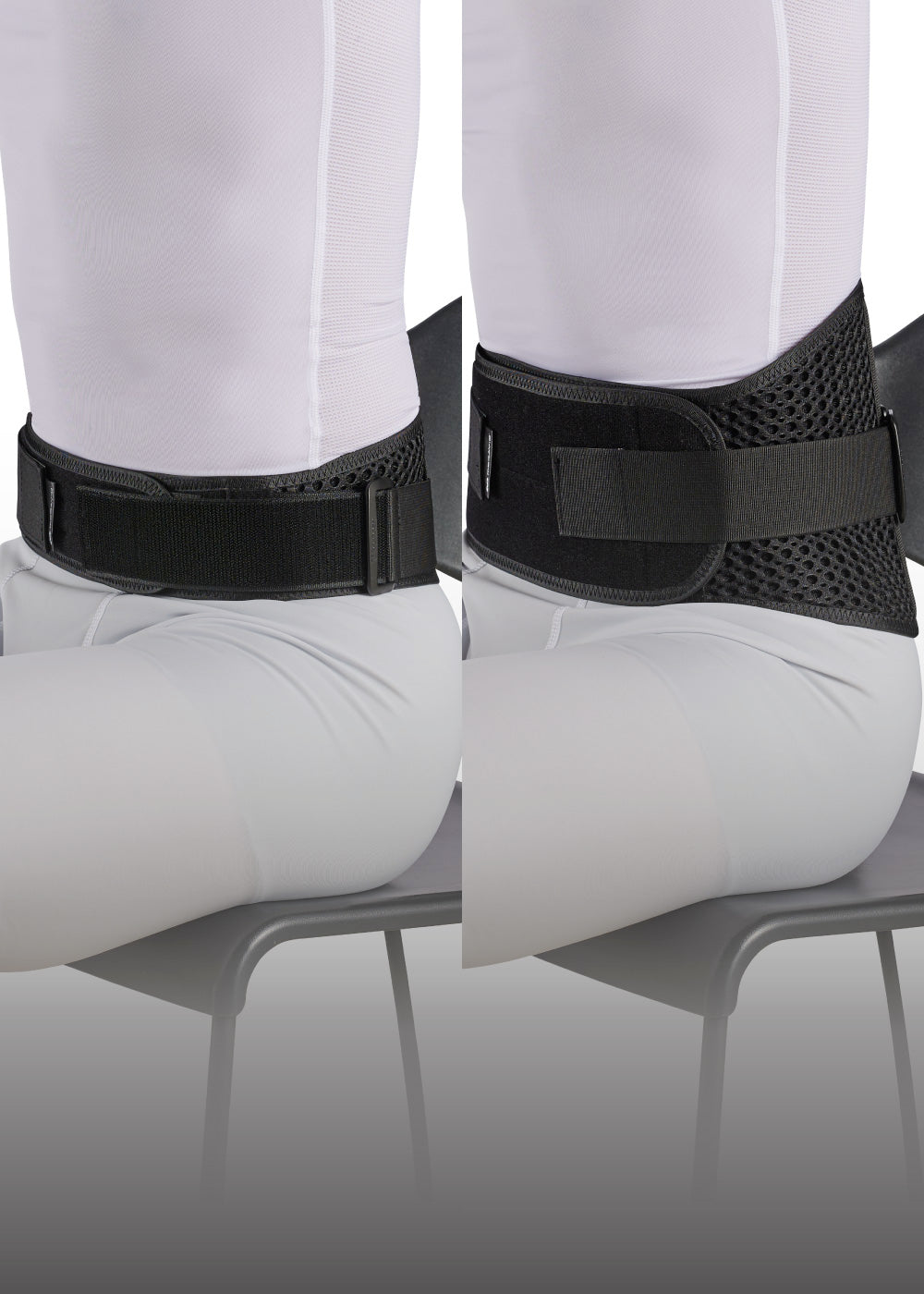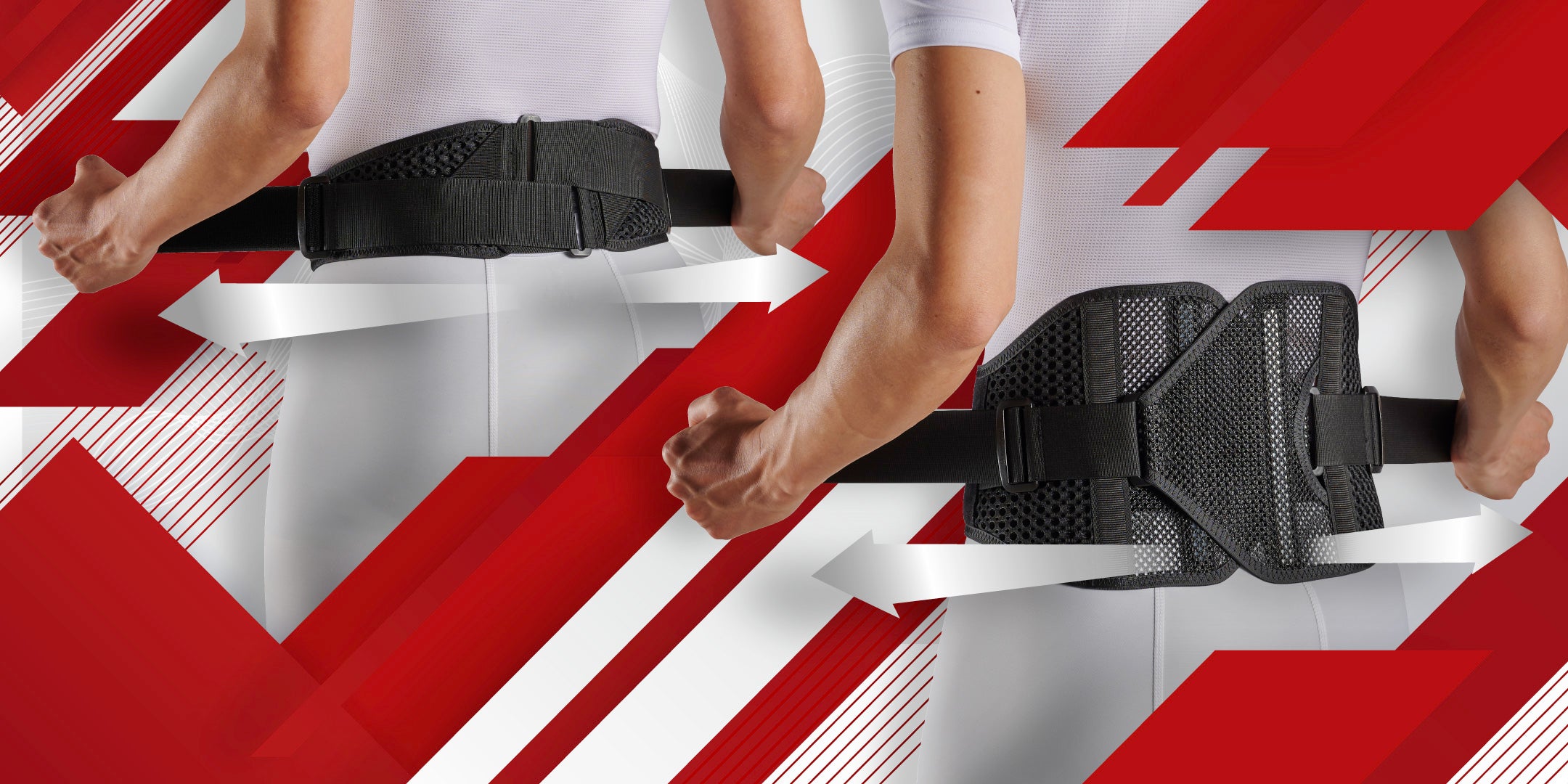 ベルトを引っ張ることでサポーターの背面部の強度が上がり、背面から支えられている安心感を得られます。