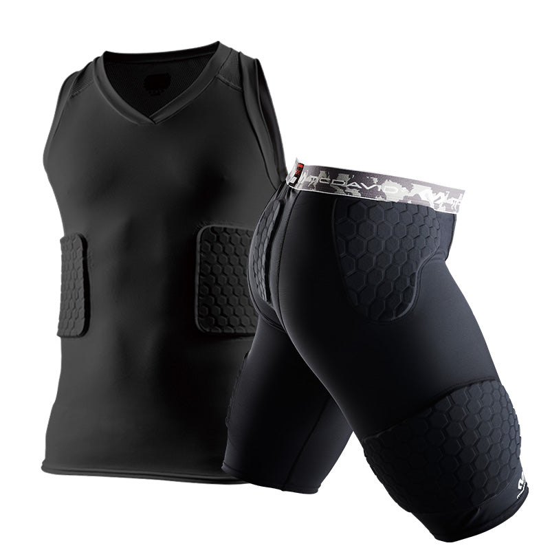 六角形の独立したパッドが一体的なハニカム構造を形成して支えあい、効果的に衝撃を吸収・分散。激しい動きでもズレずに違和感なくカラダにフィットし、動きを妨げない。