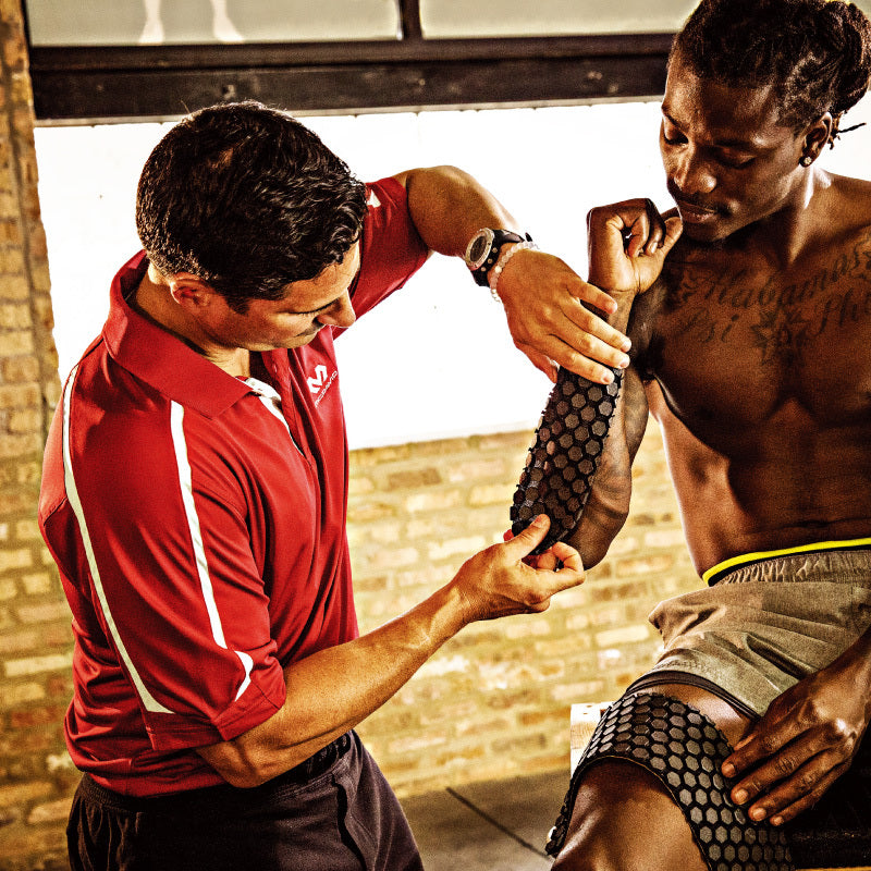 装着部位の形状にフィットする3D(立体)カット。関節部分はあらかじめ若干の屈曲位を保つようにデザイン。あらゆる動きに対応。